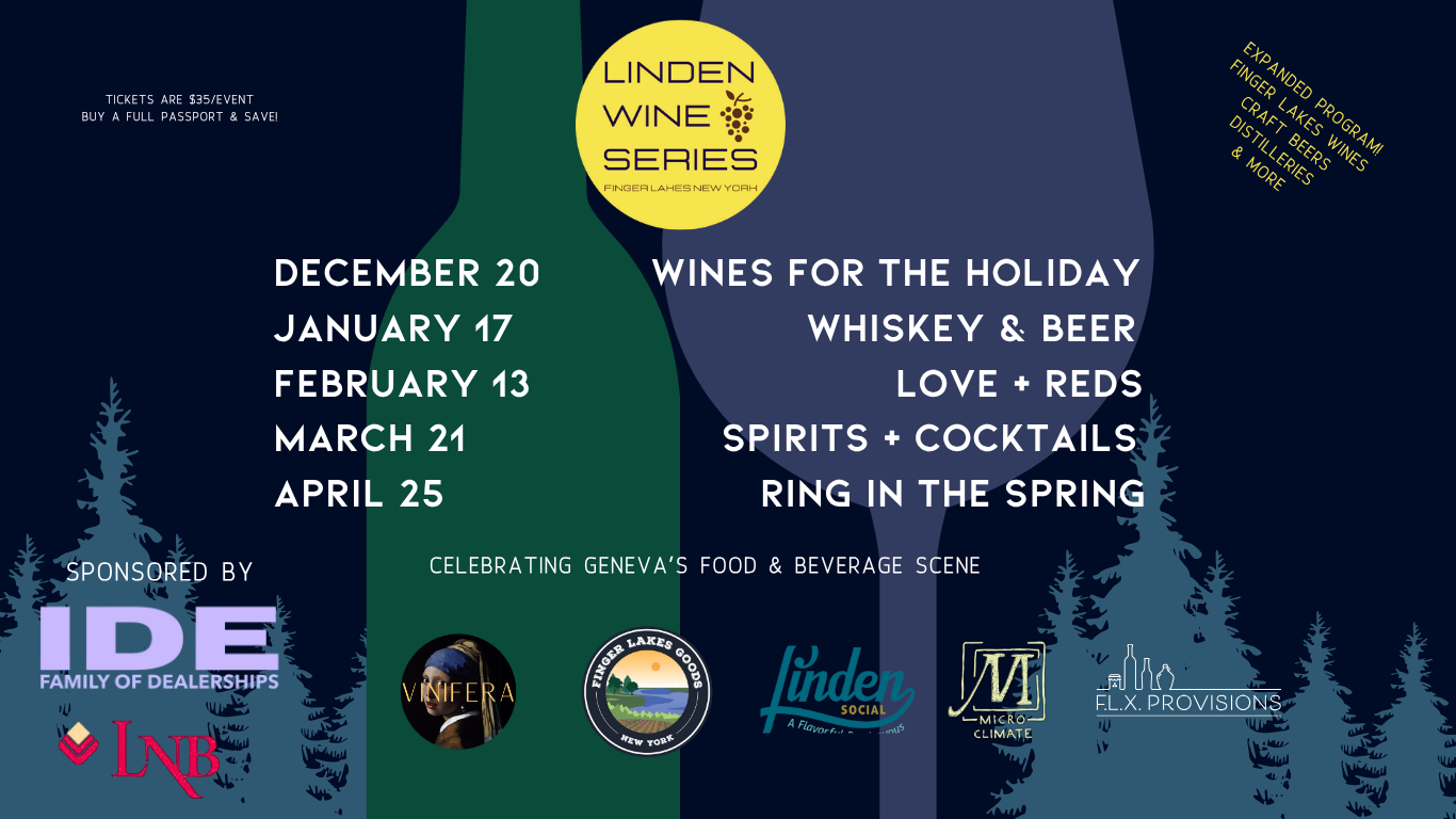Winter on Linden Street in downtown Geneva transforms into a cozy, wine-focused celebration of the Finger Lakes. As snow settles between the historic brick buildings, the street glows with warm lights, and the inviting hum of conversation. A curated series of events highlights the region’s renowned cool-climate wines—library pours, winemaker showcases, intimate pairing dinners, and pop-up tastings that bring together some of the area’s most exciting producers. Guests wander from door to door, wrapped in scarves and the comfort of community, discovering new vintages and deepening their appreciation for the craft that defines the Finger Lakes.